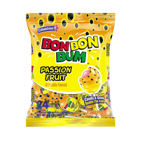 - Bon Bon Bum Maracuya - Savoury passion fruit hard candy lollipops filled with a burst flavourful of passion fruit gum