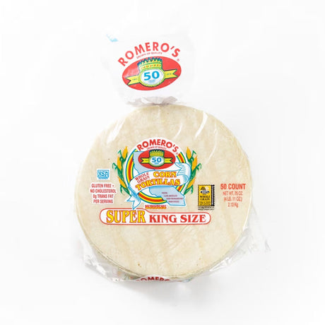 - Romero's White Corn Tortillas Super King Size - Tortillas de Maiz Blanco 6.2" 50ct / 2.3kg $849Unit price /Unavailable