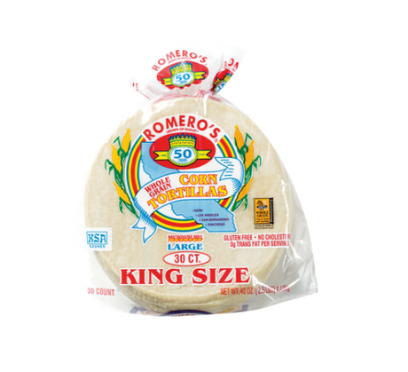 - Romero's White Corn Tortillas King Size-Tortillas de Maiz Blanca 6.2" 30ct /1kg. $549Unit price /Unavailable