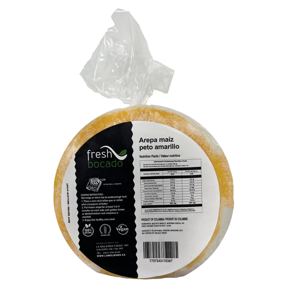 - Arepa Maiz Peto Amarillo - Yellow corn patty made with 100% Colombian corn.