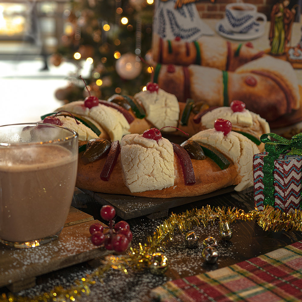 Rosca de Reyes (Large & Medium sizes) – A festive Mexican sweet bread shaped like a crown, decorated with candied fruits and sugar, and containing a hidden figurine. Available now through Unimarket Latin Food in Canada.