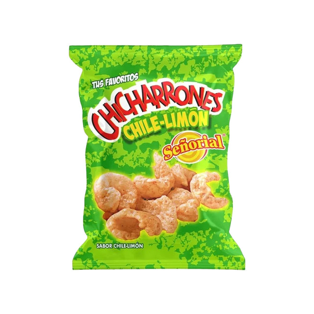 - Señorial Chicharrones - Experience the bold and zesty flavor of Señorial Chicharrones Chile Limón – 55 g, a classic Mexican snack that combines crispy pork rinds with a tantalizing blend of chili and lime. These crackling pork rinds offer a satisfying crunch and a perfect balance of spicy heat and citrus tang, making them an ideal snack for any time of the day. Whether you're craving a quick bite or looking to add a flavorful twist to your meals, Señorial Chicharrones Chile Limón delivers an authentic taste of Mexico in every bite