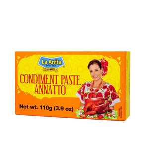 - La Anita Achiote - Enhance your dishes with the vibrant flavor of La Anita Achiote! This high-quality achiote seasoning is perfect for adding a rich, earthy taste and beautiful color to your culinary creations. Ideal for marinating meats, preparing traditional Mexican dishes, or adding a unique twist to your favorite recipes, La Anita Achiote delivers an authentic flavor profile with ease. Conveniently packaged and crafted with premium ingredients, this seasoning is a must-have for any kitchen seeking to elevate their meals with a touch of traditional Mexican flair.