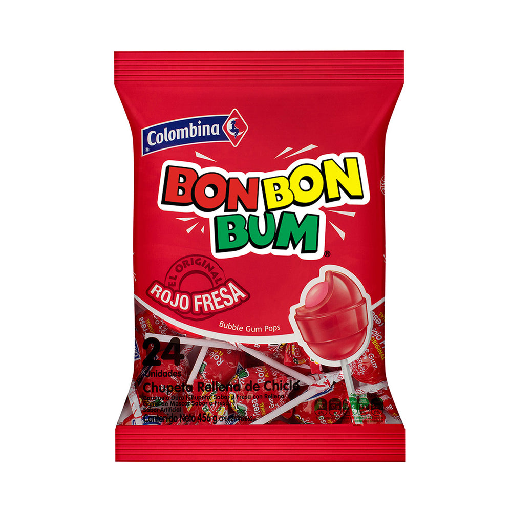 - Bon Bon Bum Fresa - Sweet and savoury strawberry hard candy lollipops filled with a burst of flavourful strawberry gum