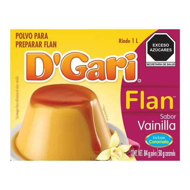 D'Gari Caramel and Vanilla Flan Mix | D'Gari Flan de Vainilla y Caramelo 134g is backordered and will ship as soon as it is back in stock.