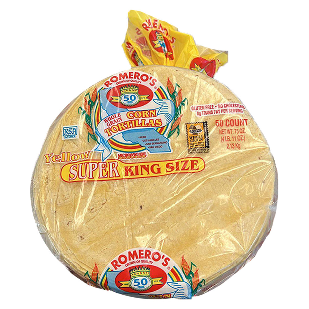 Romero's Yellow Corn Tortillas Super King Size - Tortillas de Maiz Amarillo 6.2" 50ct / 2.3kg Information