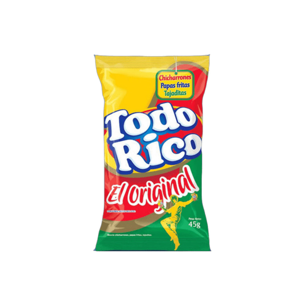 - Todo Rico El Original - Savour the classic taste of Super Ricas – Todo Rico El Original 45 g, Colombia’s iconic snack mix. This irresistible blend combines crunchy corn chips, peanuts, and other tasty bites, all seasoned with a signature savoury flavour. Perfect for parties, on-the-go snacking, or enjoying with friends, Todo Rico El Original delivers the authentic taste and crunch loved across generations.